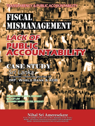 Nihal Sri Ameresekere, F.C.A. (Sri Lanka), F.C.M.A. (United Kingdom), C.M.A. (Australia), C.F.E. (United States), is a Member, International Consortium on Governmental Financial Management and a Member, International Association of Anti-Corruption Authorities. Former Advisor, Ministry of Finance and Chairman, Public Enterprise Reforms Commission Sri Lanka. Has functioned as Senior Consultant on World Bank and USAID funded public sector economic reform projects. A multi-disciplinary professional, exposed to private and public sectors, and a public interest activist, with wide international exposure. Not a legal professional, yet has appeared in person before the Supreme Court, successfully advocating public interest litigations. He is a forensic accounting investigative specialist. Has dispassionately spoken out on matters of national and public interest. Ardently upholds the sacred precept, that public property is solely of the people, and managed in fiduciary trust by governments; transgression of which he has committedly combated. Has published exposés into transactions carried out, under the aegis of IMF, World Bank and ADB privatization agenda, incisively analyzing real case studies, exposing the shockingly dubious manner, in which privatizations have been perpetrated by the highest levels, disclosing the alarming indifference of international developmental agencies, completely eroding public confidence, crucial for meaningful privatization, to foster a free economy, characteristic with transparency. He emphasizes that ‘economic terrorism’ germinates ‘armed terrorism’, resulting in violation of human rights. ‘Concerns of humanity, transcends interests of nationality’, he propounds; and that poverty alleviation schemes merely replace, at the cost of the poor, their own resources pillaged and plundered by socio-politically influential. Politicians vigorously campaign on election platforms, vociferously decrying fraud and corruption, vowing stringent action thereon. However, upon assuming office of government, get bogged down in the very quagmire of fraud and corruption, invariably peddled by powerful multinationals – as lucidly demonstrated through a series of other publications on his real life experiences thereon.