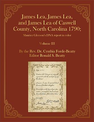 James Lea, James Lea, James Lea, 1794, Caswell County, North Carolina Which One Married the Bankston Daughter? Volume I: Researching James Lea of Caswell County, deposed in 1794, was challenging because of decades of erroneous information. The author has addressed this by creating a comprehensive study of the Leas of Caswell and Person Counties, North Carolina, based on original records. Volume I details this important research and outlines the first three generations of early Lea families. Volume II: Appendices of sources: copies of the original records as noted in Volume I. Volume III: This volume in color improves the Big Y-DNA study of the Lea family from Caswell and Person Counties, North Carolina (shown in black-and-white in Volume I). This is the most comprehensive Y-DNA study done to date, offering key insights into the Leas' heritage. The study was conducted by the Rev. Dr. Cynthia Forde, compiled and analyzed by Dr. Maurice Gleeson of England, an internationally renowned genetic genealogist. Volume IV: To be published: maps grants and deeds of early Lea families in Caswell and Person Counties, North Carolina. By the Rev. Dr. Cynthia Forde-Beatty Editor Ronald S. Beatty